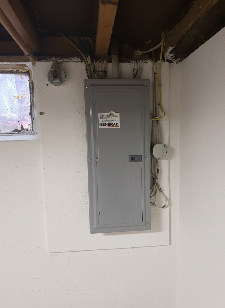 Transfer Switch Installation: We install a manual transfer switch next to your main electrical panel. This allows you to safely connect your portable generator to your home's circuits, powering selected essential appliances without the risk of backfeeding power to the utility grid.